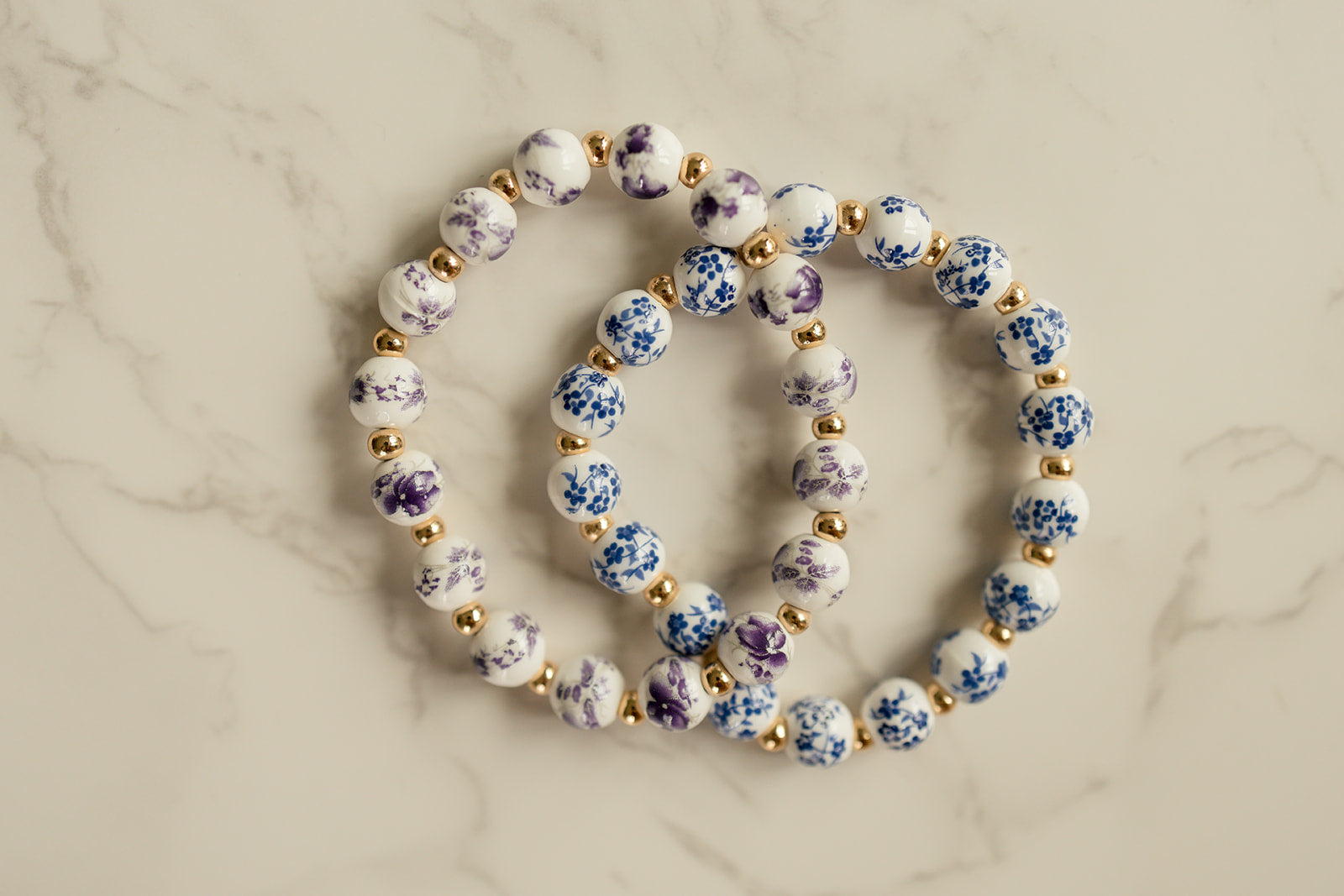 - Beautiful blue and white flowered beads for a vibrant, floral aesthetic
