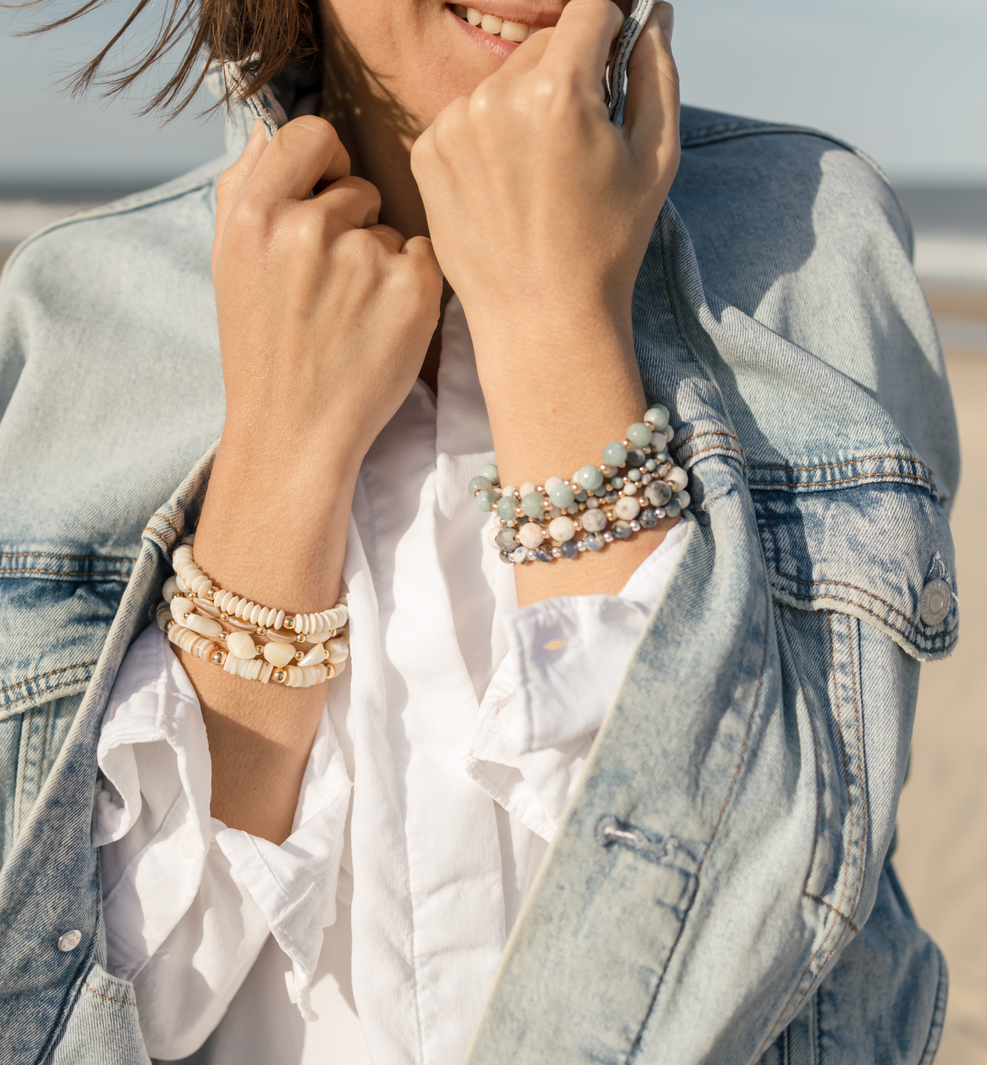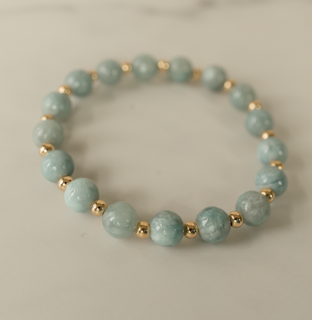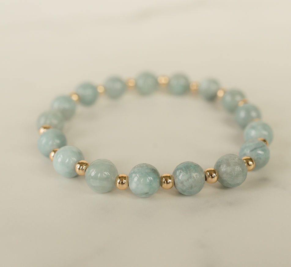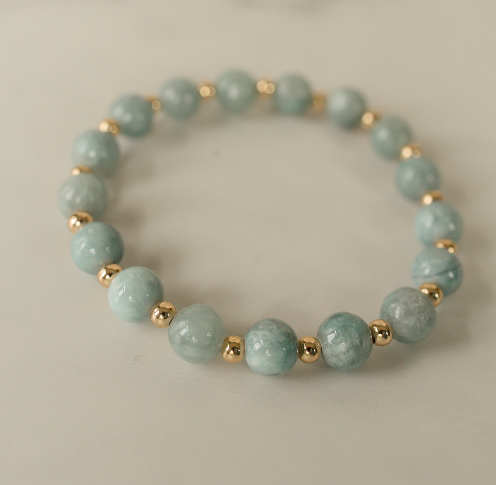 A personalized expression of calm and sophistication, Avalon Days' Blue Quartz Gilded Stone Bracelet seamlessly elevates your look for any occasion. Handcrafted with meticulous care, this bracelet features exquisite blue dyed quartz beads in 3mm, 6mm, and 8mm sizes, each with gold overlaid brass bead accents. Embrace the soothing energy of blue quartz while adding a touch of your unique style to every ensemble. Choose your bead size, adorn your wrist, and let the Blue Quartz Gilded Stone Bracelet become a timeless symbol of your personal elegance!