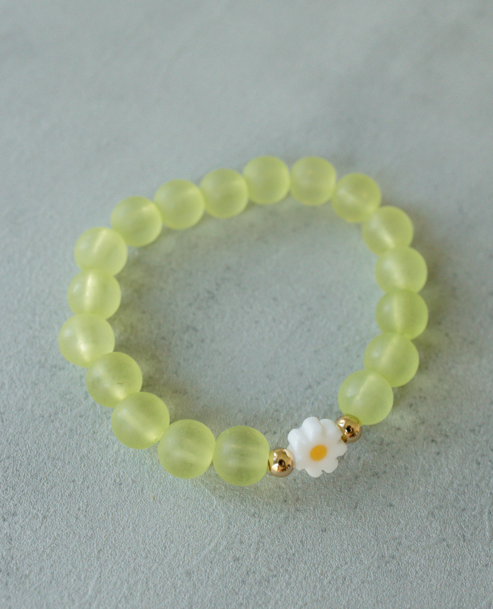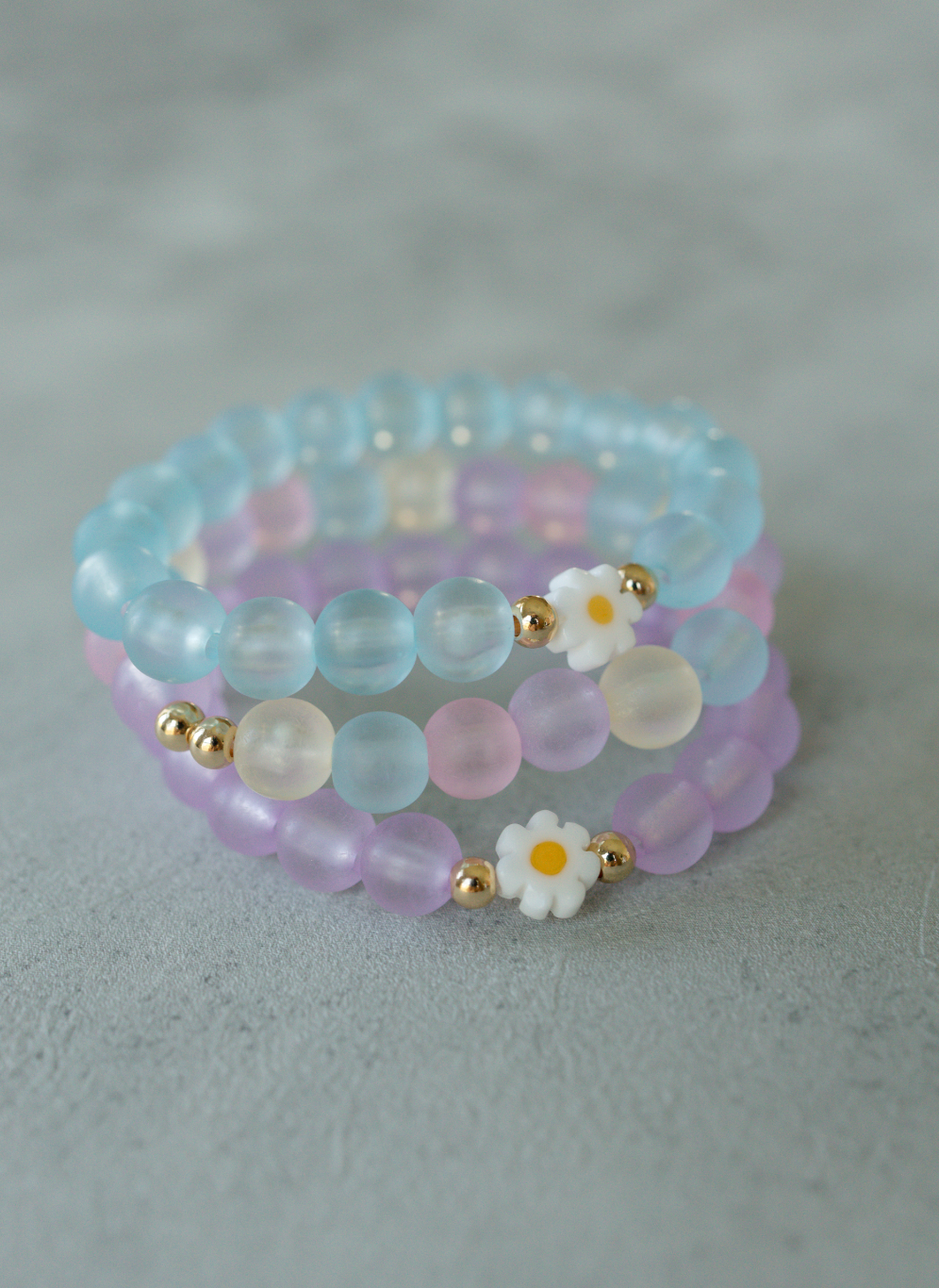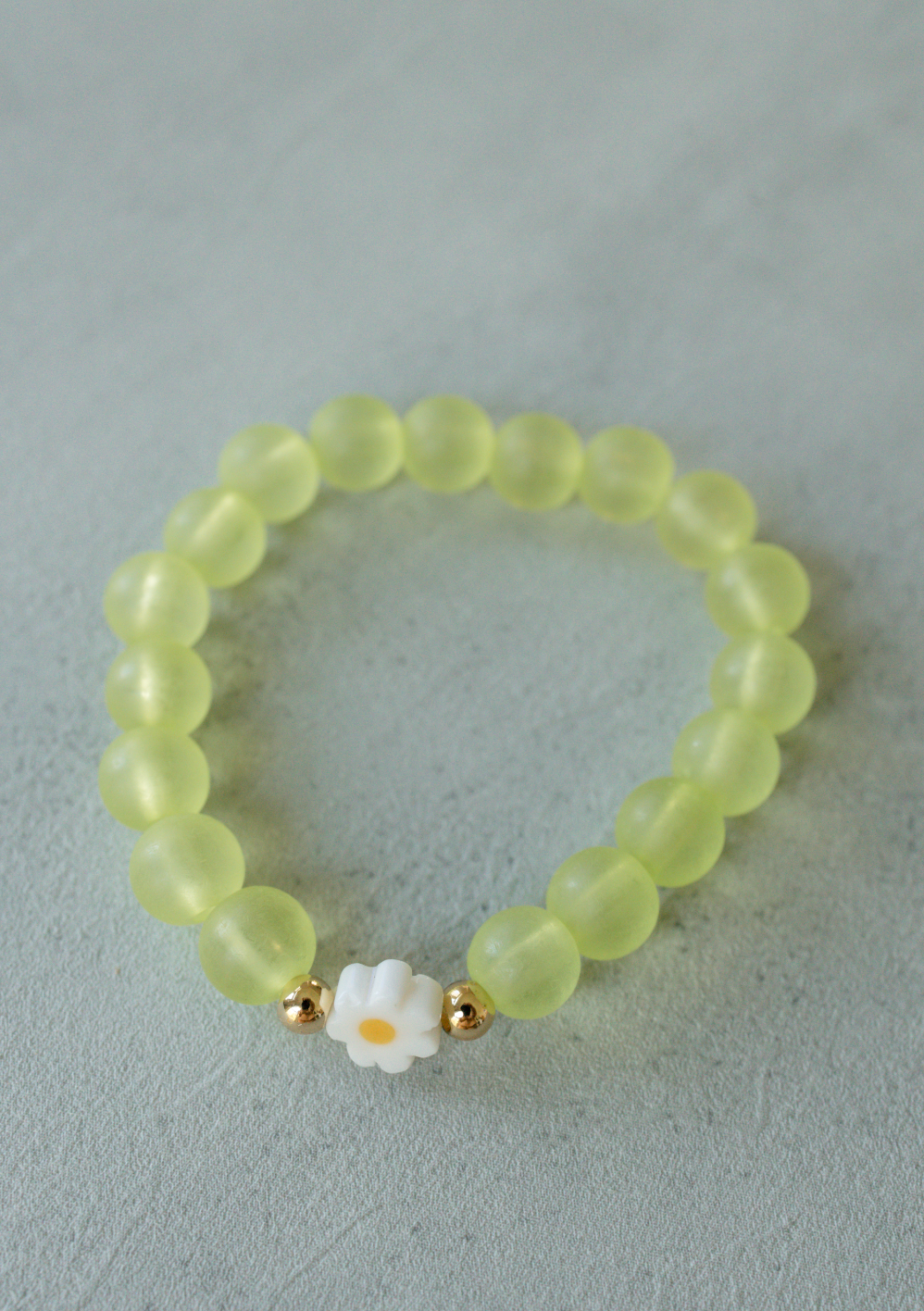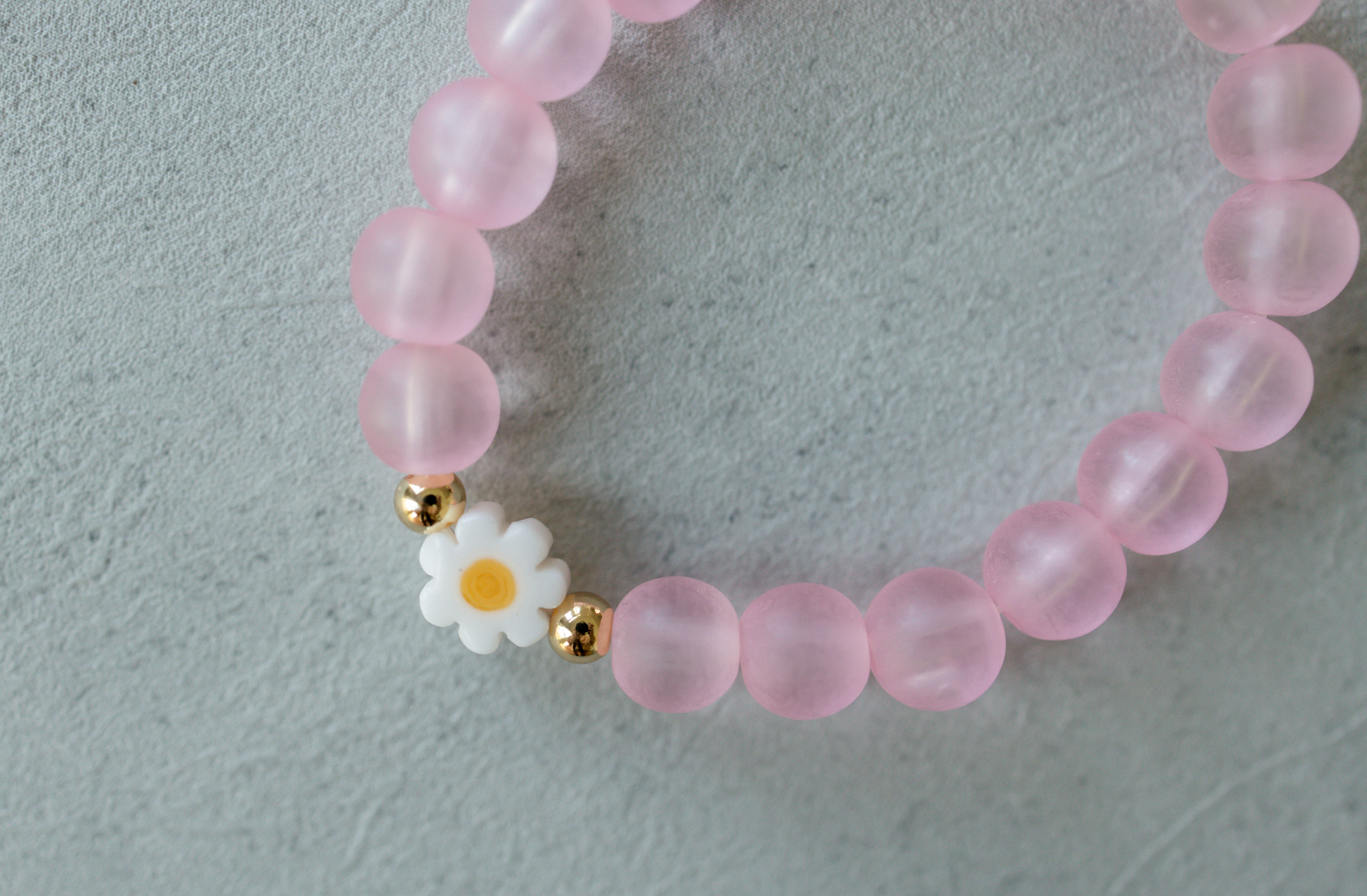 Introducing our "Daisy Delight Kid's Bracelets", an enchanting array of vibrant accessories designed to add a burst of color and cheer to your child's outfits. Each bracelet is adorned with charming yellow and pink beads, accentuated by a delightful daisy flower bead that serves as the centerpiece. These bracelets, part of our exciting collection, come in a rainbow of five different colors for your little one to choose from and mix and match. Crafted with the joy and whimsy of childhood in mind, these Daisy Delight Kid's Bracelets are sure to captivate your child's imagination and become a favorite accessory!