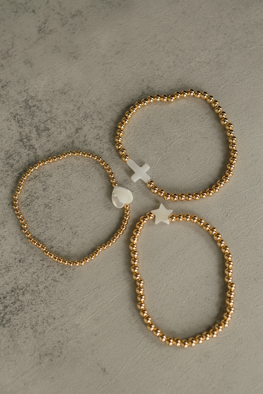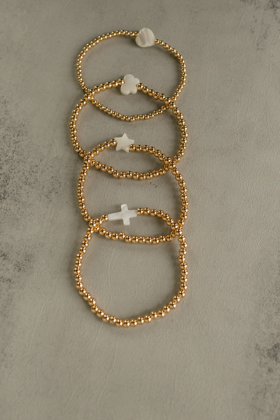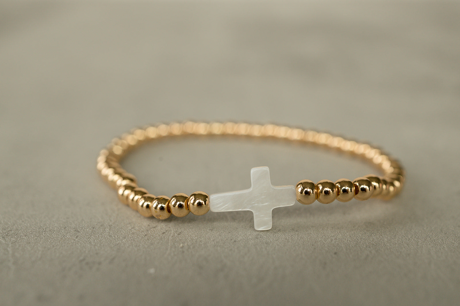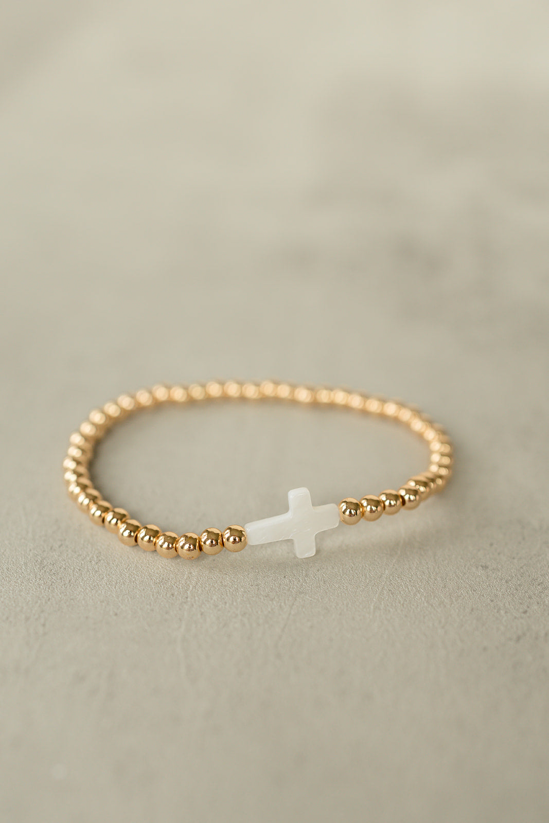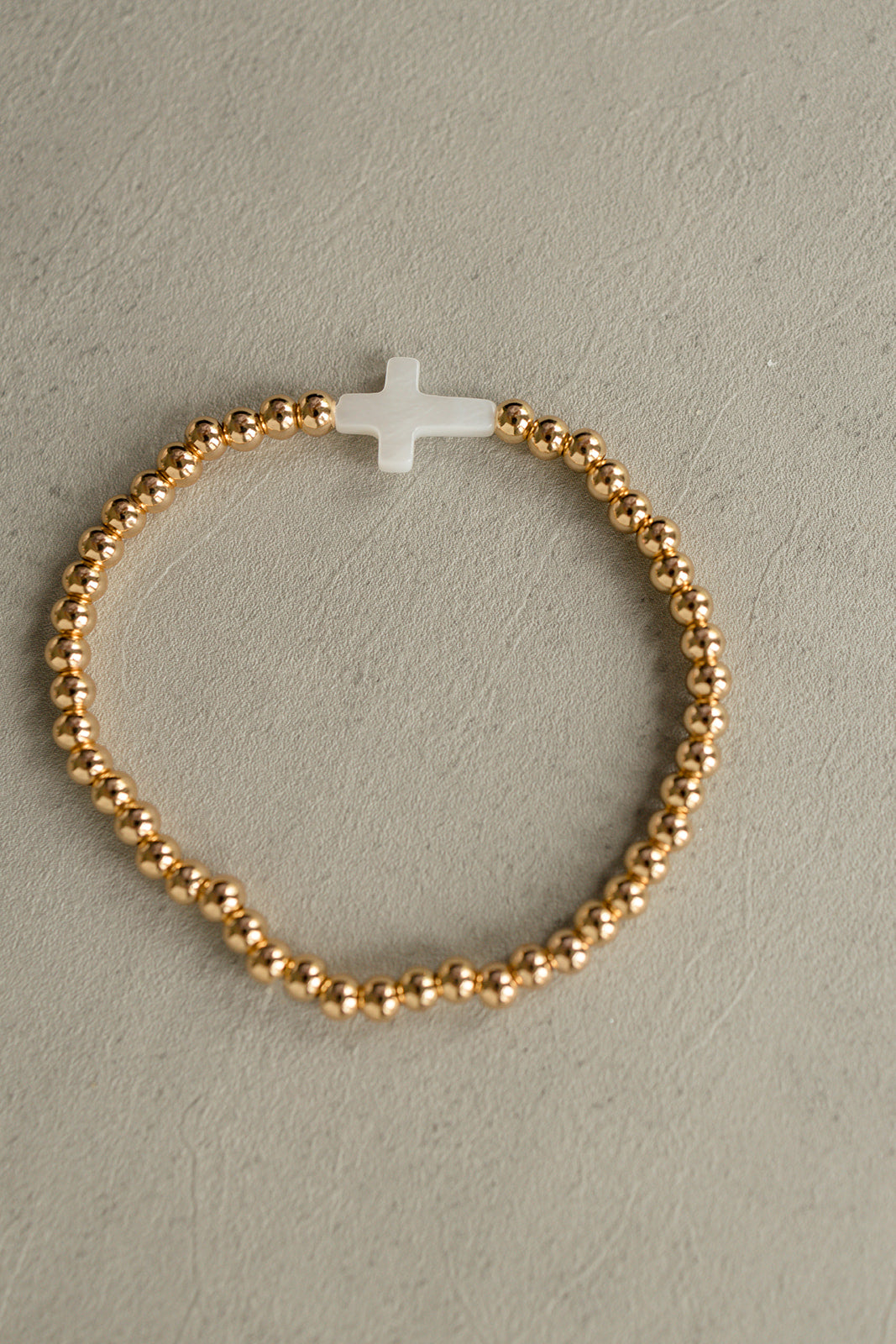 Introducing our stunning Gold Beaded Cross Bracelet; a timeless accessory that combines style with spirituality. Each bead is meticulously crafted from high quality, gold overlay beads, exuding elegance. The centerpiece is a beautiful cross shell bead, symbolizing faith and spirituality. Whether worn alone or layered with other Avalon Days bracelets, this piece adds a touch of grace and meaning to any outfit. Elevate your style and express your beliefs with our exquisite Gold Beaded Cross Bracelet.