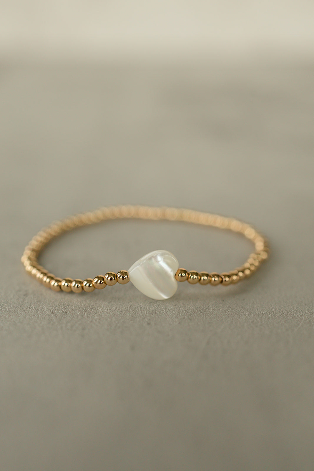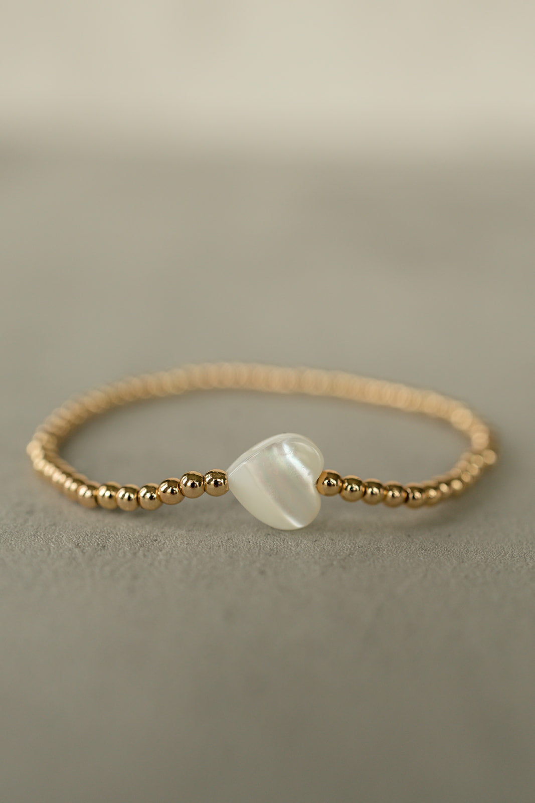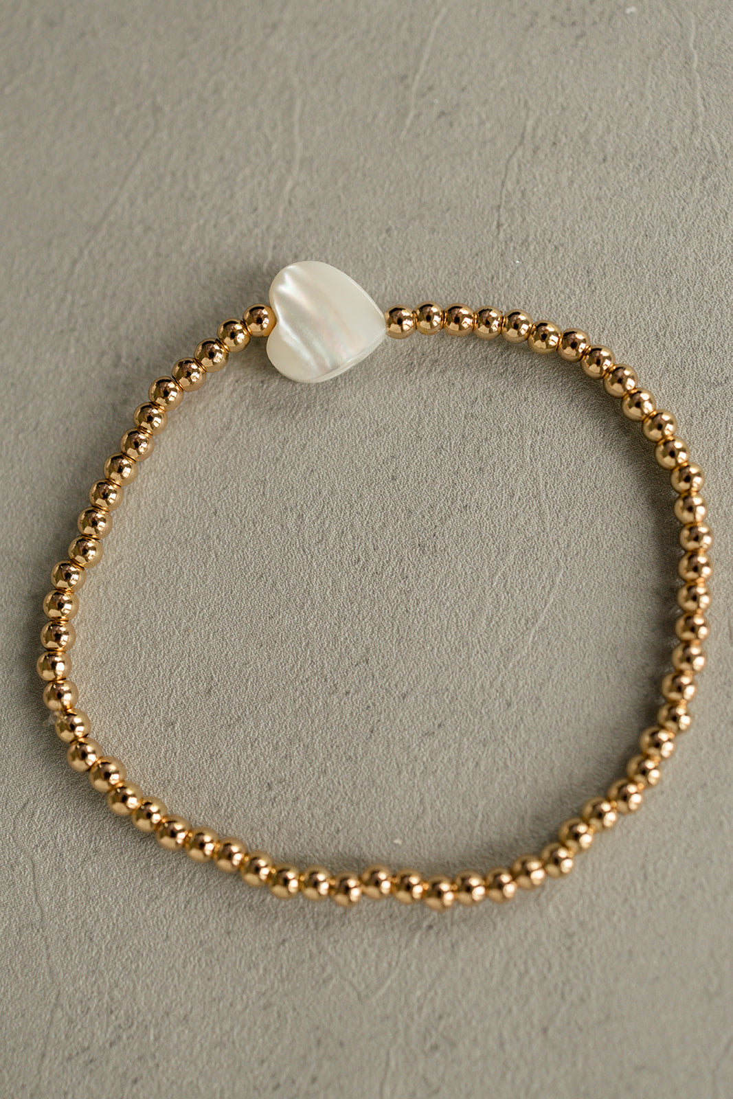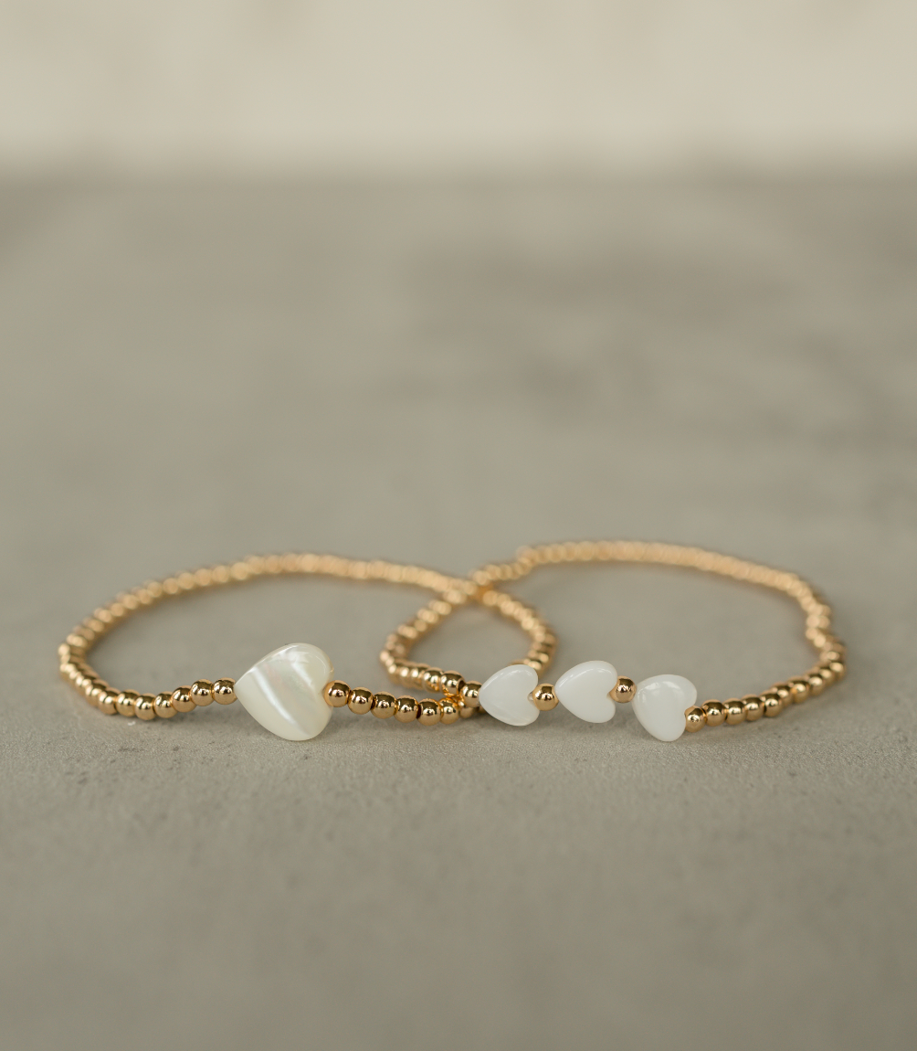 Meet the Golden Heart Bracelet – your new BFF in the world of accessories! This dazzling piece is all about charm and elegance. Surrounding the elegant white heart bead, are gold beads featuring a brass base and gold overlay, offering a luxurious shine. The bracelet is double-strung on .5mm elastic for a comfortable and secure fit. Ready to take your style up a notch? This timeless accessory effortlessly blends classic beauty with a dash of modern design.