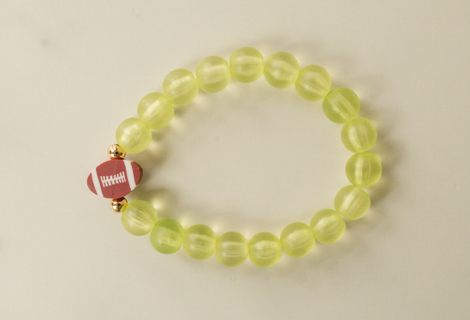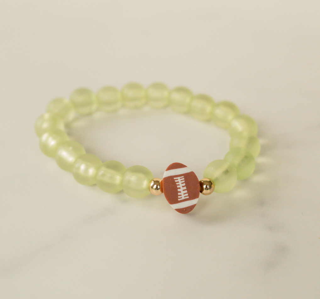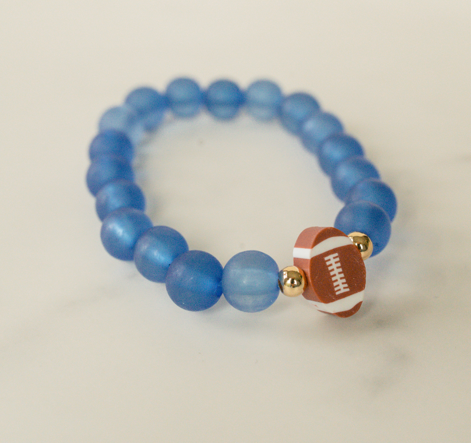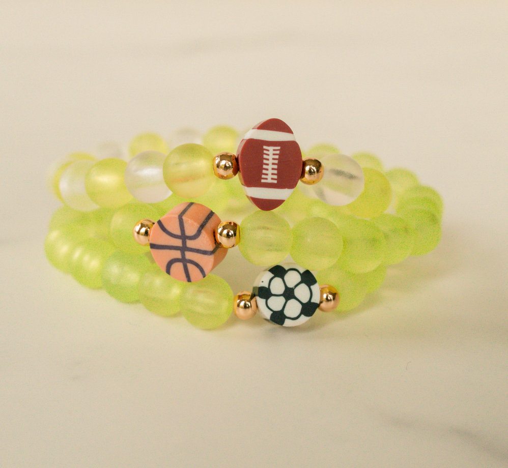 Get ready to score some style points with the Sports Lover Kids Bracelet! This trendy accessory features a sports ball bead that adds an athletic touch to any outfit. Made with double-strung .5mm elastic string, this bracelet is not only durable but also comfortable to wear. With its one-size-fits-all design, it's perfect for kids of all ages. And the best part? You can choose from a variety of sports beads including basketball, soccer, volleyball, or baseball to match your little athlete's interests. So, whether they're a football fanatic or a sports enthusiast in general, this bracelet is a must-have for any young sports lover!