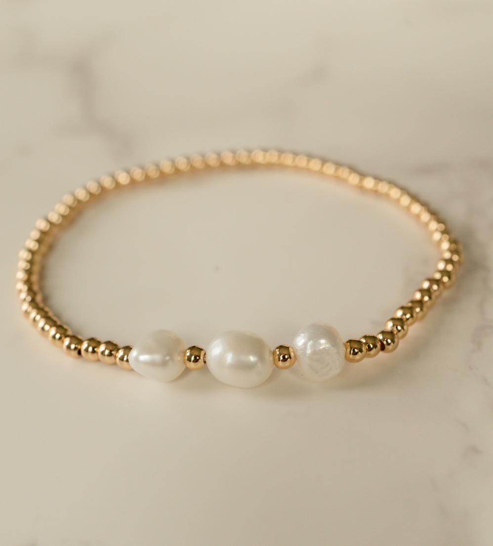 Triple Pearl Gold Beaded Bracelet